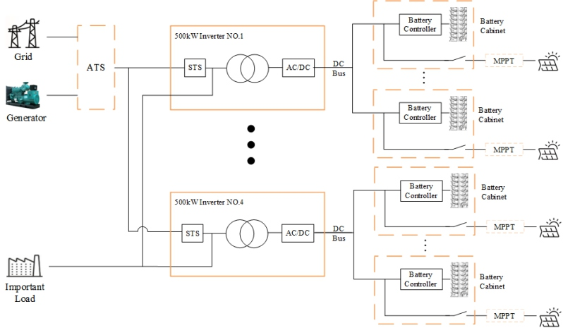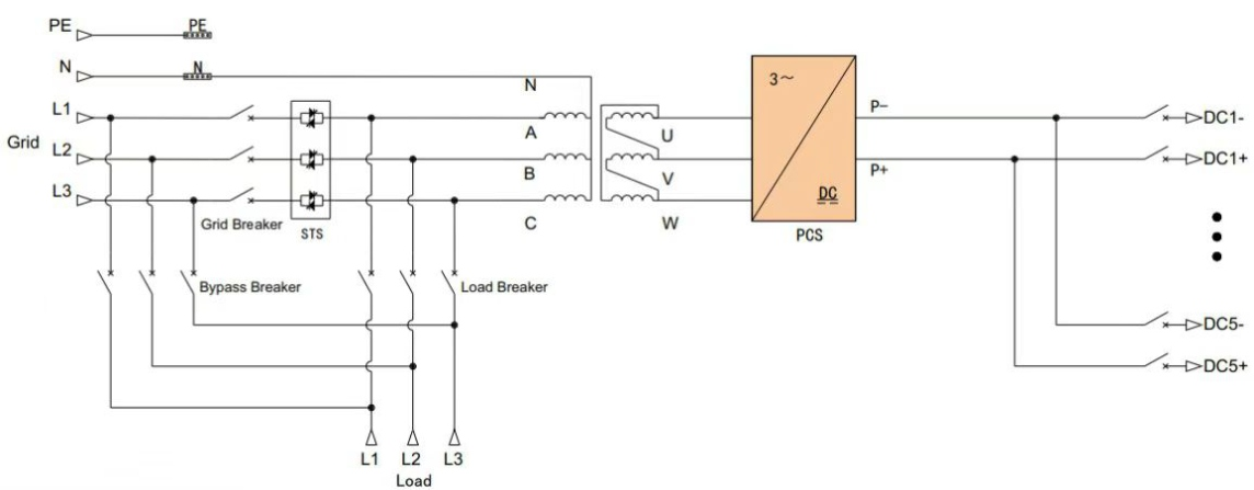 2.एकापेक्षा जास्त 500 kW प्रणाली समांतर चालवताना आणि STSacross विविध 500 kW इनव्हर्टरचे वितरण करताना, ग्रिड टाय-पॉइंटपासून लोड टाय-पॉइंटपर्यंत केबललांबी सुसंगत असल्याची खात्री करणे महत्त्वाचे आहे;